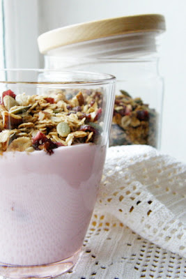 Granola tegemine tiksus aga mõnda aega peas, võttes iga päevaga ühe konkreetsema kuju. Tegelikult mitte ka kuju, pigem selgines see, milliseid koostisosi kasutada. Kindel oli see, et kõrvitsaseemned ja vahtrasiirup peavad olema, ülejäänu oli juba niiöelda dela tehniki.